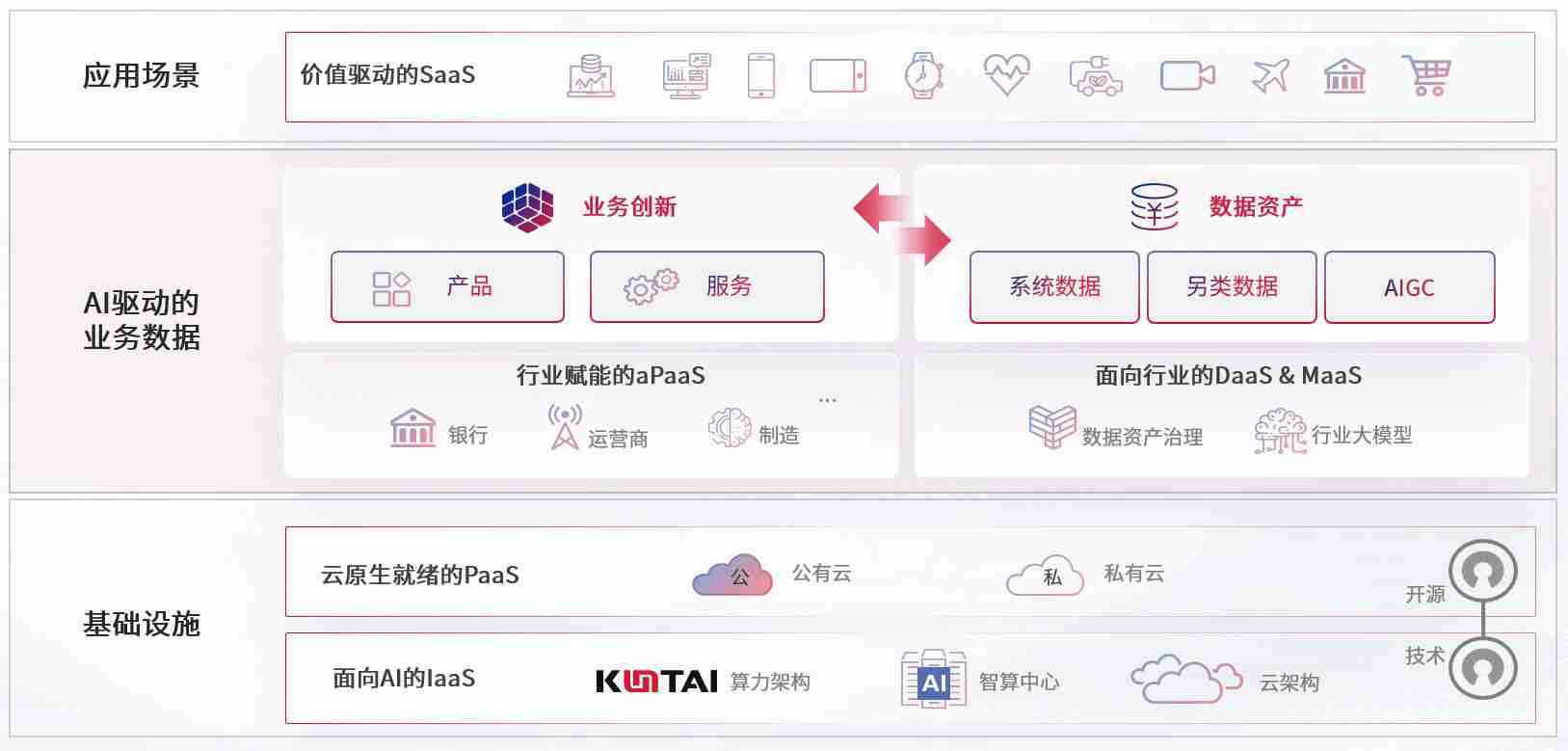 数字时代,,围绕企业数字化转型的关键要素,,,PG国际数码开创性的提出数云融合战略和技术体系框架,,,着力在云原生、、数字原生、、AI原生和信创产业上架构产品和服务能力,,为处在不同数字化转型阶段的快消零售、、、、汽车、、、金融、、、、医疗、、、政企、、、、教育、、、运营商等行业客户提供泛在的敏捷IT能力和融合的数据驱动能力,,,构建跨界融合创新的数字业务场景和新业务模式,,助力企业级客户建立面向未来的核心能力和竞争优势,,全面推动社会的数字化、、、、智能化转型升级。。